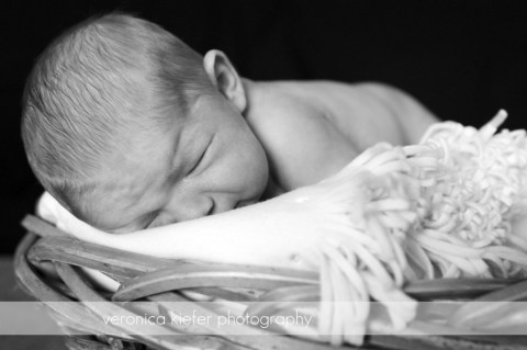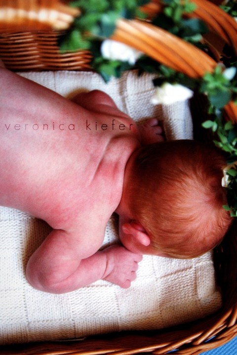 I had gotten a few props that might just fit a baby in them, like baskets. But you can see in the wrinkles on her forehead, she was not real convinced about it.